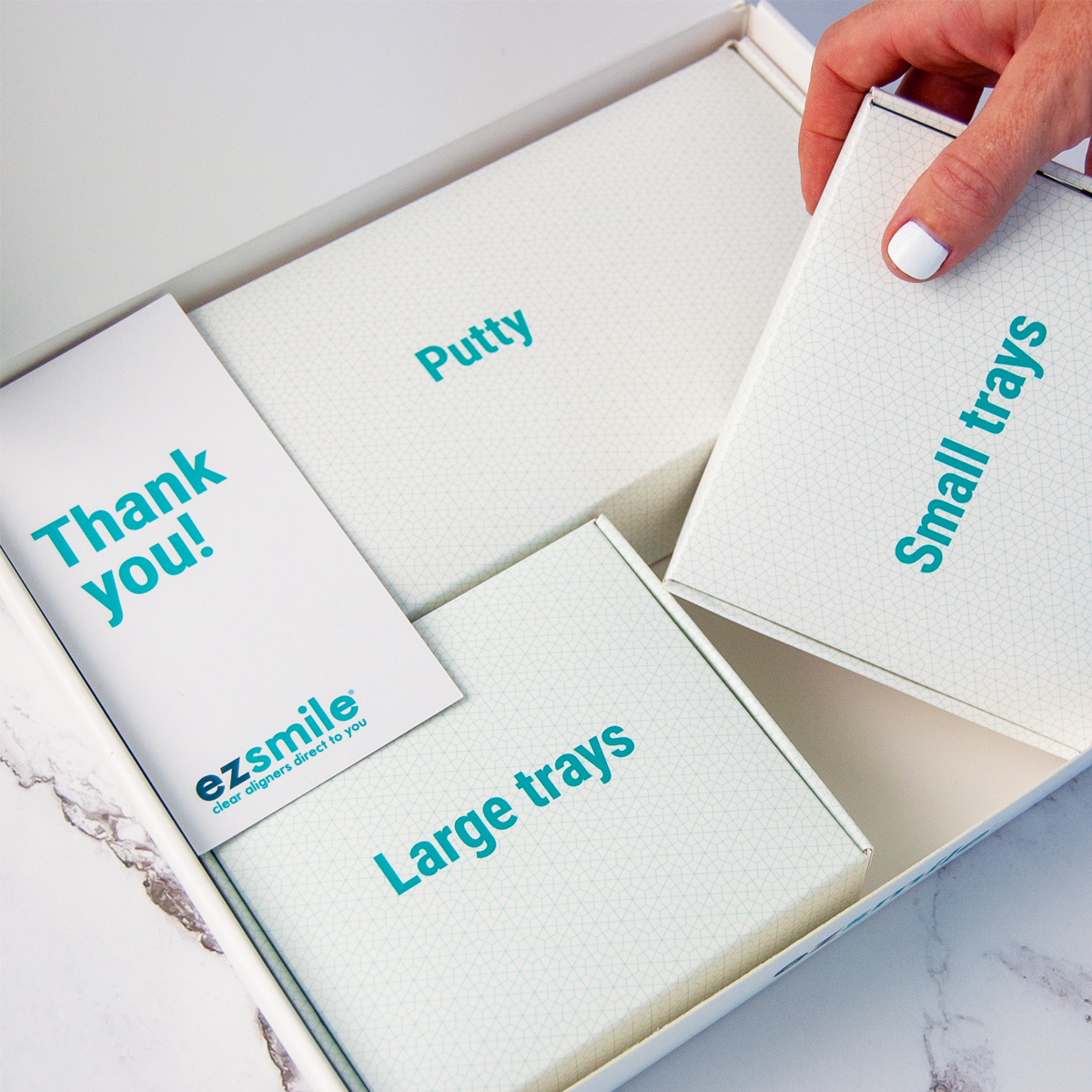 The EZ SMILE impression kit includes everything you need to get started on your teeth straightening journey from the comfort of your home.